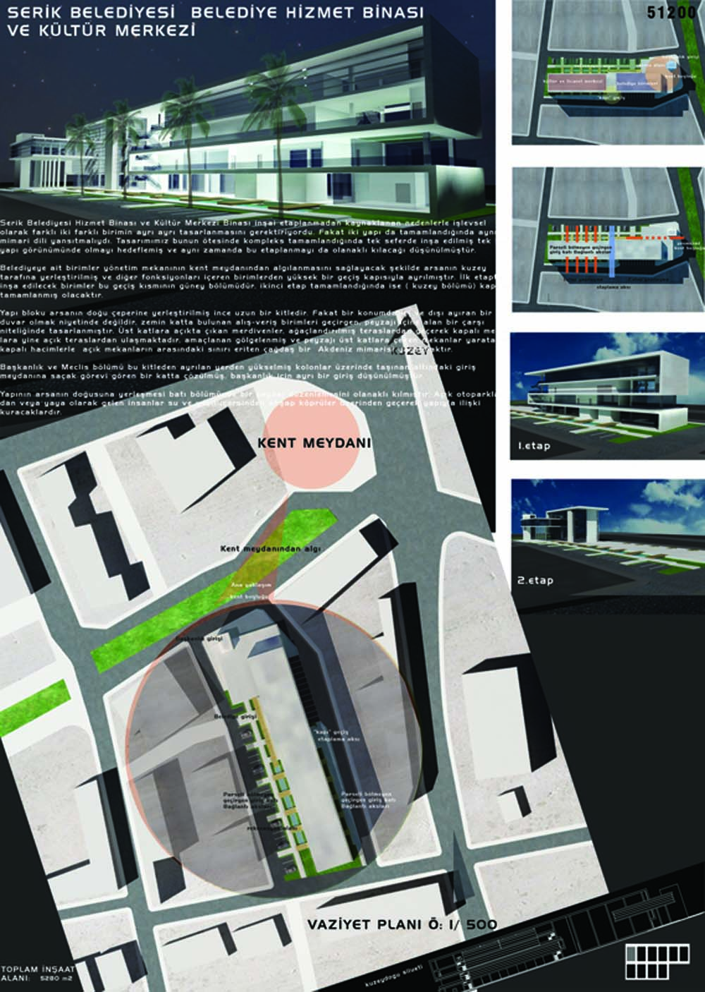 2. Ödül, Serik Belediyesi Hizmet Binası ve Kültür Merkezi Bölgesel Mimari Yarışma Projesi