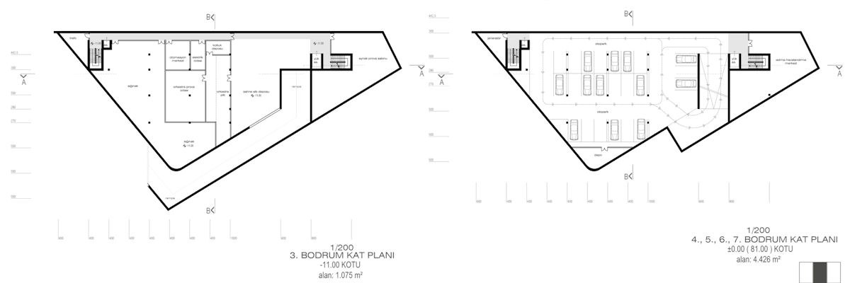 3 ve 4. Bodrum Kat Planları