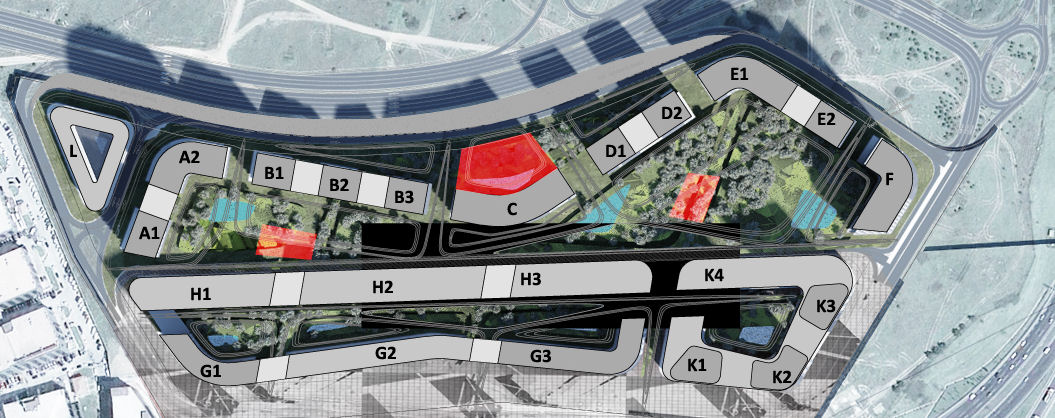 A – B Blokların avlusu ile D-E-F blokların avlusu olmak üzere, konut alanlarına hizmet eden iki adet açık yüzme havuzu bulunmaktadır. Bu açık yüzme havuzları, eğime gizlenen kafeterya ve açık oturma alanları ile desteklenmektedir. D-E-F blokların avlusunda iki adet açık spor alanı (teni kortu ve çim saha) bulunmaktadır. Buradaki yüzme havuzu kumsallı yüzme havuzu olacaktır.
