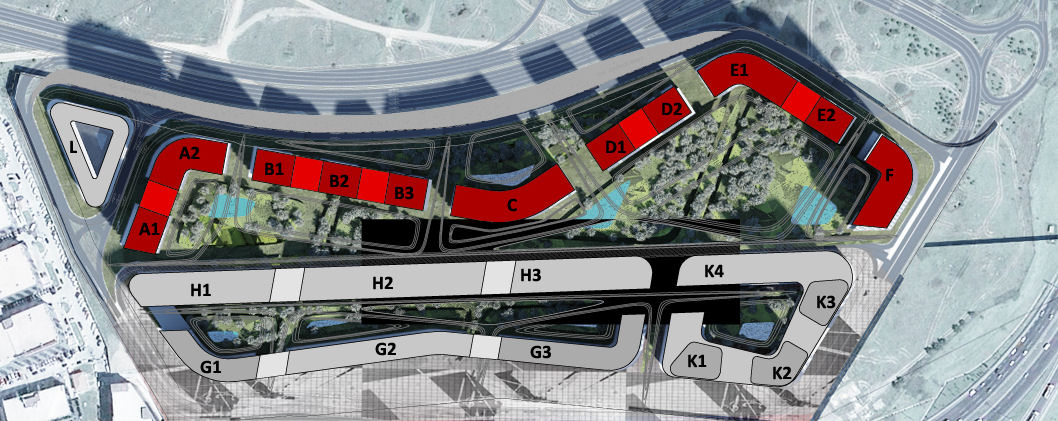 Proje alanı kuzey ve güney olarak temel fiziksel bir ayrım içinde değerlendirilebilir. Kuzeyde, hem kuzey ormanlarına, hem de kendi iç avlusuna bakan konut blokları bulunmaktadır. Bu bloklar proje alanını tanımlayan eğrisel bir süreklilik içinde kesitte ve planda akışkan ifadelerini bulurlar. Vaziyet planında bu ifadeye atılmış kesikler sayesinde adlandırılırlar. A,B,C,D,E,F adlarıyla tanımlanan bu bloklar 20 ile 30 kat arasında değişen yüksekliklere sahiptir. Kuzey konutlarında stüdyo, 1+1 1.5+1 2+1 2.5+1 3+1 3.5+1 4+1 4.5+1 ve dubleks tiplerden oluşan yaklaşık 2000 adet daire bulunmaktadır. (Proje alanındaki genel daire adedi yaklaşık 3000)