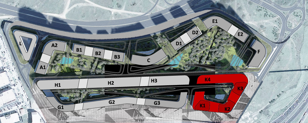 Proje alanının TEM otoyoluna komşu sınırında, İstanbul - Edirne istikametindeki ilk ve en önemli köşesinde kendi iç avlusu ve simgesel yüksek yapılarıyla (K1-K2-K3) kendi içerisinde bir dünya yaratan plaza bölgesi bulunmaktadır. Bu bölge insan aktivitesinin yoğun olduğu, kamuya açık bir alışveriş&buluşma meydanı niteliğindedir. Rezidans(K2), otel(K3), ofis(K1), kongre ve ticaretin(K4) bir araya geldiği kozmopolit bir kurguya sahiptir. 24 saat aktivitenin hedeflenebileceği, cafe, restoranlar ve şık mağazalardan oluşan çok fonksiyonlu bir meydandır. Sert peyzajın hakim olduğu meydanda çeşitli su öğeleri ve simgesel üst örtüler yer alacaktır.