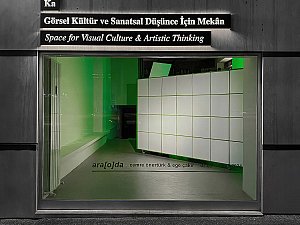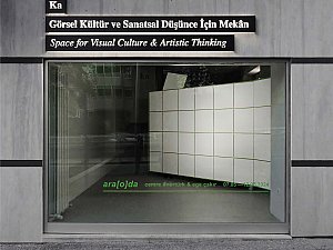 Git(eme)me-kal(ama)ma sıkışıklığı, fazlasıyla aşina olduğumuz duvarın kendi dar mekanını üreten bir çeper olması üzerinden ele alınır. Birincil ve kapalı haliyle bir sergi duvarı formunda üretilen ara[o]da, sergi mekanının sıradan bir parçasını oluşturur. Fakat diğer sergi duvarlarının aksine, ara[o]da geçirgen yapısıyla "mekan içinde bir mekan" olarak izleyiciyi içerisinde tanımladığı alanı deneyimlemeye davet eder. Sergi evresi Ka Space'de gerçekleşen Ara[o]da, formunun referansını giriş kapısının genişliğinden alarak izleyiciyi kentten ulaşılan bir deneyim alanı olarak duvarın içindeki mekana yönlendirir. İçine girilebilen duvar, izleyiciyi "beyaz küpün" ve beyaz küp içinde kaybolan dış yüzeylerinin nötr atmosferinin aksine, tamamen kontrast bir dilde kurgulanmış aradalık mekanını deneyimlemeye davet eder.