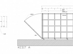 Bu sıkışık iç mekân, aynı git(eme)me-kal(ama)ma hali gibi hem çok tanıdık bir o kadar da yabancıdır. Aşina olmadığımız bir kurguyla bir araya gelen son derece tanıdık gündelik eşyalar, dar mekânın bütünleşik parçalarıdır. Buluntu eşyalarla üretilen bu kurgu, aradalığın huzursuz edici karakterini vurguladığı kadar, belirli bir döneme ait olmamalarıyla odağı nostaljik bir kurgudan tamamen uzaklaştırarak aradalık halinin "zamansızlığına" işaret etmeyi hedefler. Nesnelerin iç mekana yerleşimi her ne kadar alışılmadık olsa da yeterince vakit geçiren izleyici mesken kavramına dair kalıplaşan mekânsal bölüntülere ait bildik dizilimler fark edecek, giriş alanından yaşam alanına, çalışma alanından ıslak mekanlara, iç içe geçmiş bir bölüntülenmeyle karşılaşacaktır. Bu ara mekan, içerisinde mekânın ve nesnelerin nerede başlayıp nerede bittiğine; birbirleri arasındaki gerilime, ve parça-bütün ilişkisine dair sorgulamalar açan bir örgüye dönüşür. Yerleştirme, iç mekanı ile ürettiği arada yaşam alanı tezahürünü yalnızca duvarın getirdiği dar mekanla sınırlı çeper ile değil, bir de kent aksında konumlandırdığı yansıtıcı yüzeyle yapmaktadır. İçine girince karşılaşılan yansıtıcı yüzey, izleyiciye imgesi sürekli dönüşen kent ve yaşam alanı arasında ek bir aradalık katmanı yaratır.