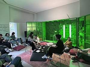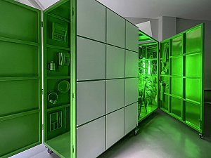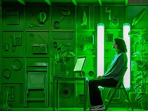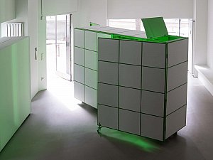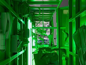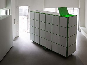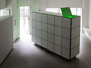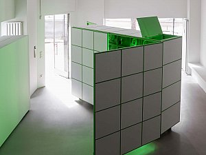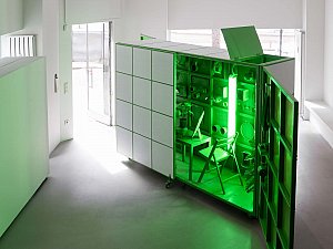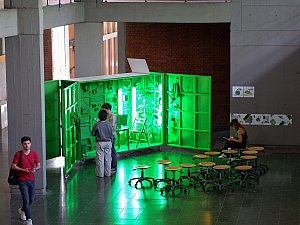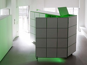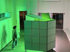 Bu dönüşme hali, yerleştirmenin kapakları açıldıkça yavaş yavaş dışarı saçtığı ışıkla vurgulanırken, kente yansıyan ve kentliyi tetikleyerek etkileşmeye davet eden bir arzu nesnesi de tanımlar. Yerleştirmenin iç mekanının sahip olduğu yeşil renk, neredeyse rahatsız edici bir dikkat çekme halini hedeflerken aynı zamanda bir "provokatif yeşil kutu" olmayı amaçlar. Yeşil ekranları referans alan bu kurgu, mekan ve objelerin bütünleşerek neredeyse bir rölyefe dönüşmesine zemin hazırlamanın yanı sıra mekanın varoluşu itibariyle sürekli olarak bir kimlik ve aidiyet arayışı içinde olmasını dolayısıyla üstüne yansıtılan, entegre edilene göre sürekli olarak dönüşmeye teşne olduğunun altını çizer.