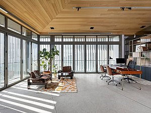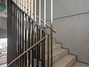 Tasarım sürecindeki en büyük zorluklardan biri, zaten düşük olan tavan yüksekliklerine rağmen ferah çalışma alanları yaratmaktı. Zaman içinde bina bir tarafa doğru eğildiğinden, döşemeler düzeltilirken kaçınılmaz olarak 10 cm’lik bir kayıp yaşandı. Aynı durum tavanları da etkiledi.