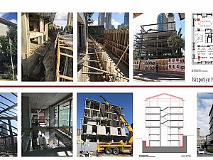 Projenin en büyük zorluğu, yeni bir bina inşa etmek yerine mevcut yapının korunmasının zorunlu olmasıydı. Bina, yalıtım için tamamen çevresinden kazıldı ve güncel deprem yönetmeliklerine uygun şekilde kapsamlı biçimde güçlendirildi. Yapı bütünüyle soyuldu. Çatı ve en üst kat tamamen kaldırılarak, daha ferah iç mekânlar yaratmak amacıyla çelik strüktürle yeniden inşa edildi. Aynı amaçla bazı döşemeler de kaldırıldı. Binanın köşelerine dört büyük kolon eklendi ve bu köşeler açık balkonlar olarak bırakıldı.