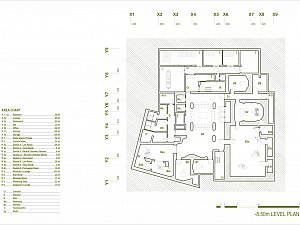 Bu mekânsal geçiş, kullanıcıları zemin kattan -10m kotunda yer alan Müzisyen Fuayesi ’ne yönlendiriyor. Bu iniş, müzik üretimine odaklanmayı kolaylaştıran yeraltı mağara atmosferini çağrıştırırken; doğal ışık, tasarımın ana omurgası olmayı sürdürüyor.
