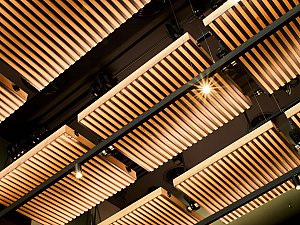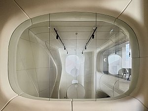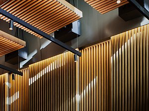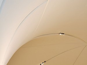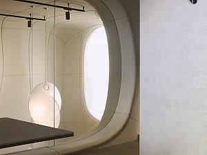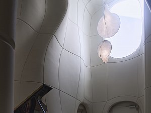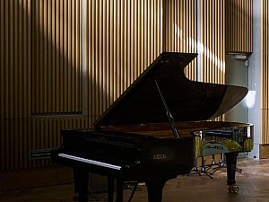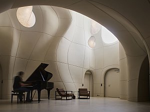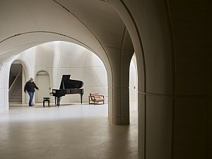 İç mekânda ise deneyim bütünüyle evriliyor. İç mekânlar; değişken tavan yükseklikleri, farklı genişlik ve derinlikler ile titizlikle kalibre edilmiş yansıtıcı/yutucu yüzeylerden oluşan bir ses peyzajı sekansı olarak kurgulanarak, her mekân; hacmi, formu ve malzemesiyle ayrılmaz bir bütün oluşturarak, eğitimli bir kulağın hemen ayırt edebileceği özgün bir mekân deneyimi sunuyor.