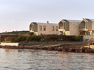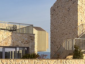 Pür, karşıtlıklardan doğan gerilimi mekânsal bir yolculuğa dönüştürüyor. Yapı; Cunda’nın mimari mirasına sadık kalan, ancak tektonik dilini çağdaş teknikler ile rafine eden yalın, iki katlı bir yığma ve ahşap strüktür olarak yükseliyor.